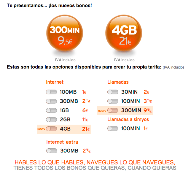 Así es, añadimos los nuevos bonos de 4GB (21€) y 300MIN (9,5€) para aquellos simyos que quieran hablar y navegar sin cortarse ni un pelo 😉