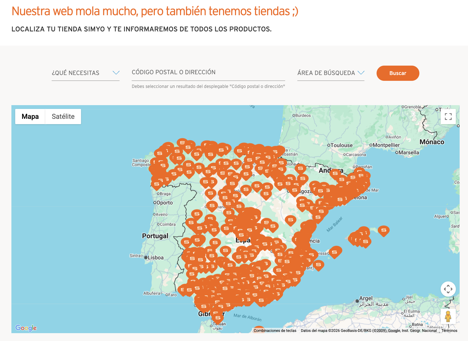En simyo tenemos una web que es una pasada y que te permite tramitarlo todo online, sin esperas ni líos… pero a veces, también es cómodo ir a una tienda. Así que si en algún momento necesitas realizar tu comprar en un punto de venta de simyo, también puedes hacerlo.